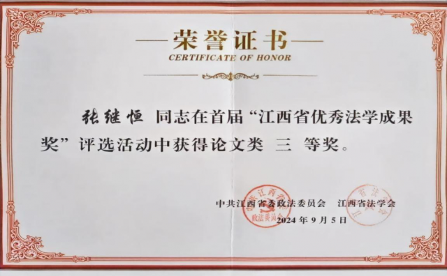 2024年11月5日,由中共江西省委政法委员会、江西省法学会举办的首届“江西省优秀中青年法学家和优秀法学成果奖”颁奖仪式在...