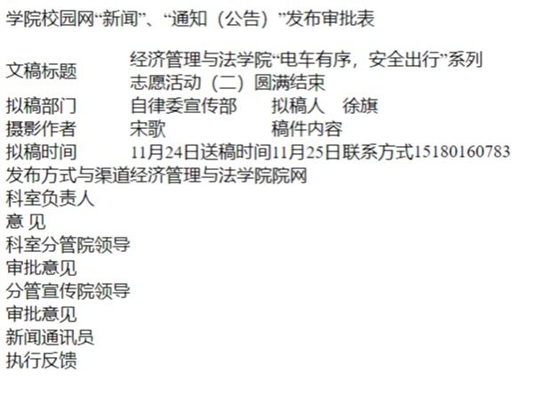 学院校园网“新闻”、“通知(公告)”发布审批表 文稿标题 英国威廉集团“电车有序,安全出行”系列 志愿活动...